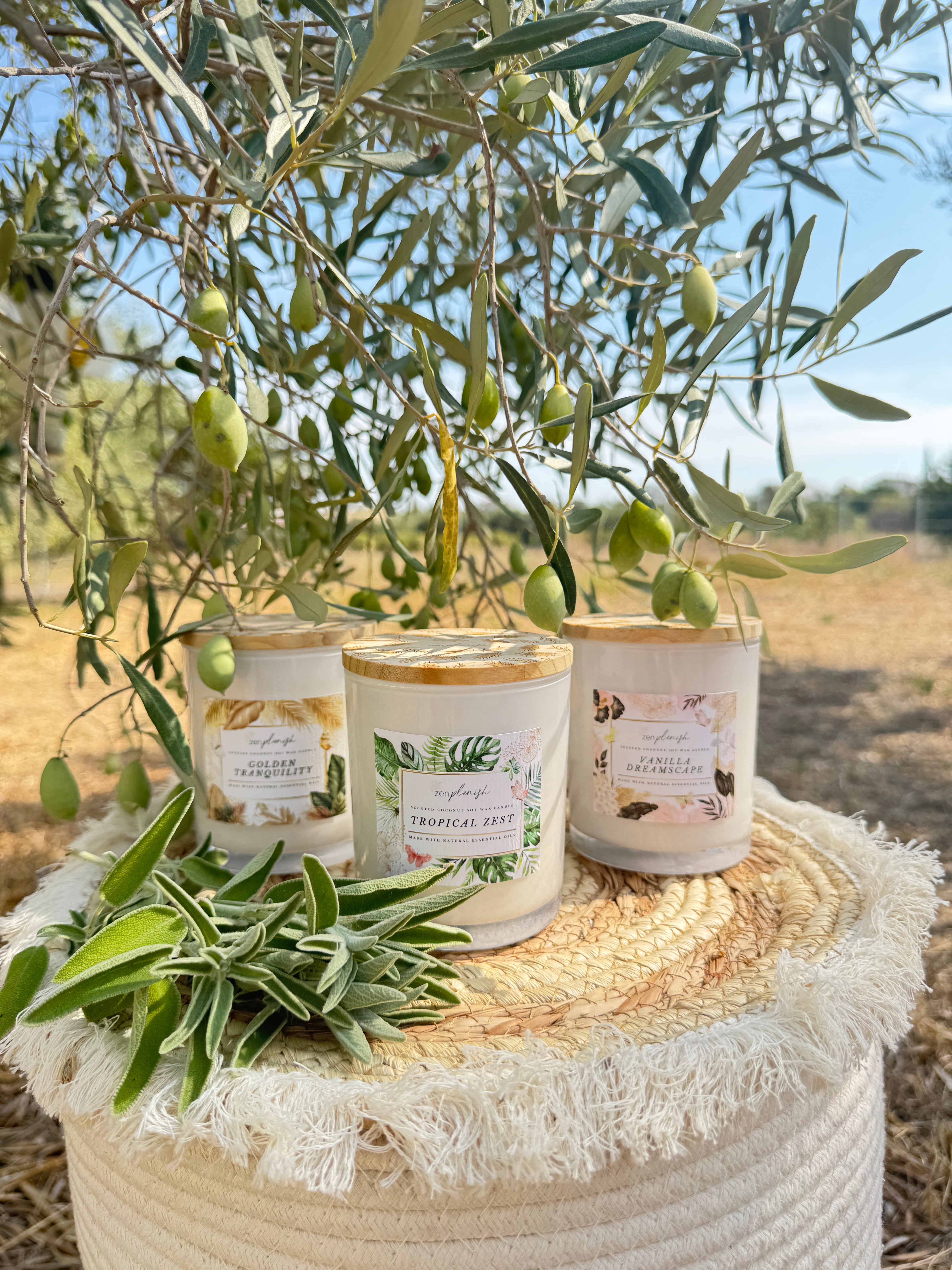 Our clean-burning coconut soy wax candles are infused with pure botanical scents and mood-lifting essential oils — all wrapped in a luxurious gift box made to elevate your everyday moments.