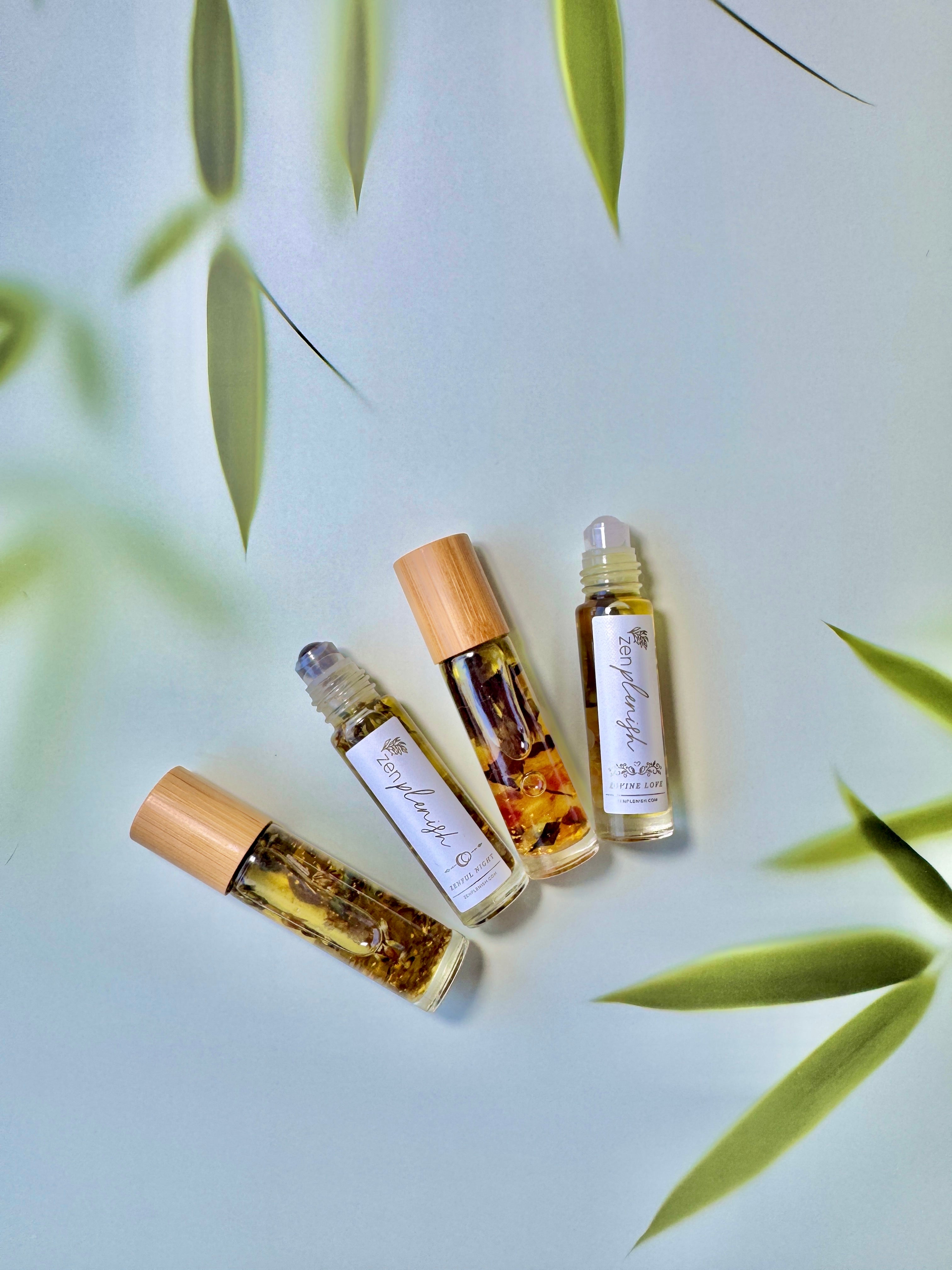 Zenplenish roll-ons are crafted with 100% natural, cold-pressed, organic essential oils—blended with care and intention to support your emotional well-being and daily rituals.